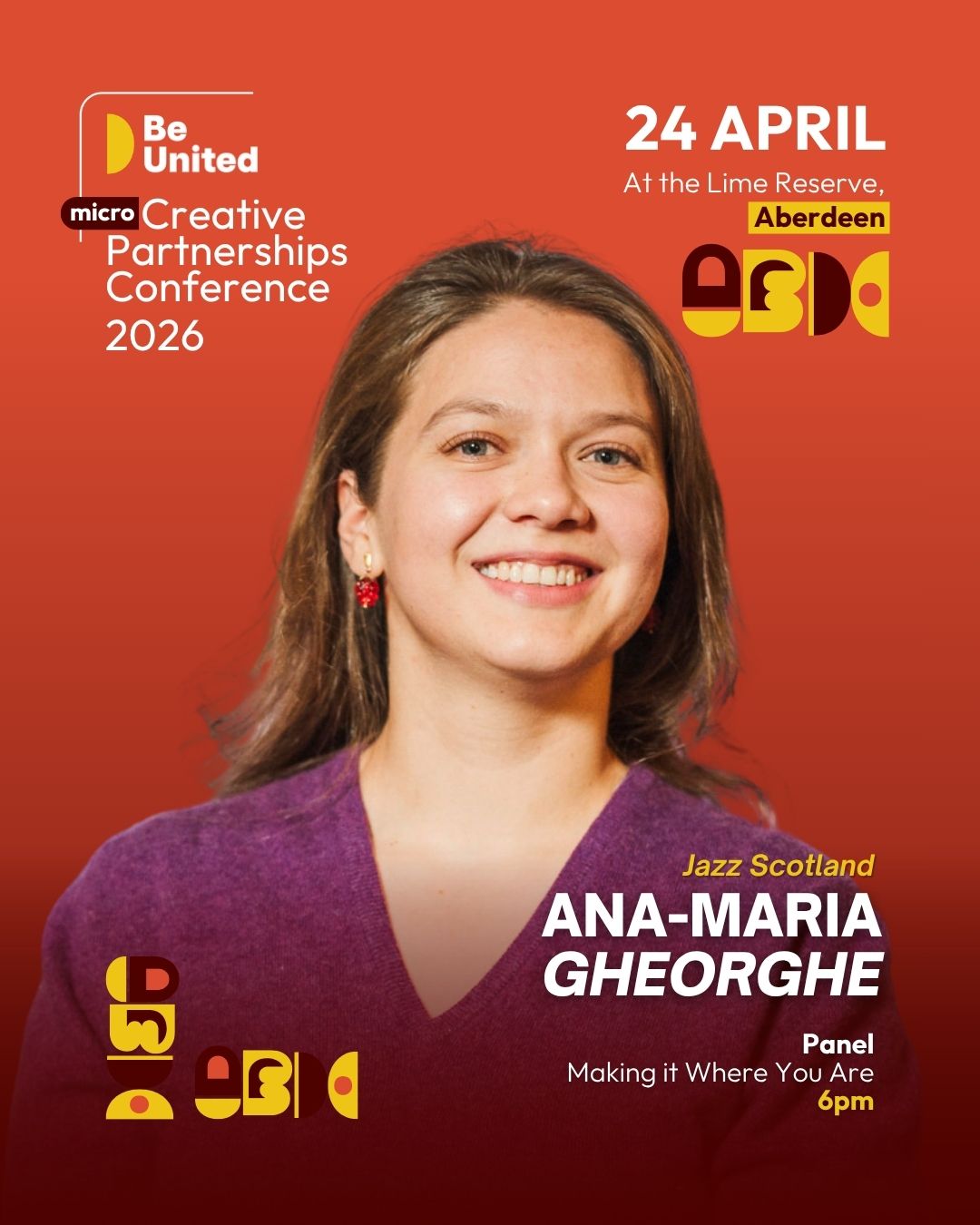 Ana-Maria works as a Festivals Coordinator for Jazz Scotland, an organisation she started volunteering with after moving to Aberdeen. Ana-Maria is currently looking after three festivals and heading a consultancy firm AMG Consulting.